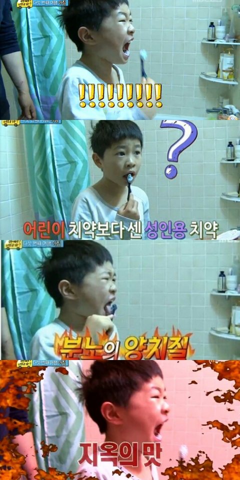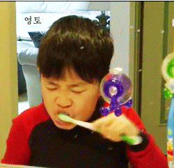 어린이용치약이다떨어져서 아빠김성주씨치약으로이를닦는데ㅋㅋ