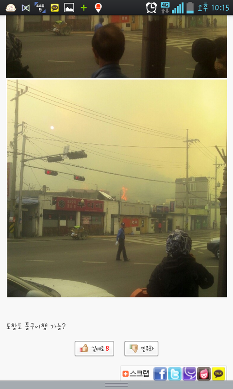 가 나오고있는 상황이였고 검색어1위에도올라가있는 상황이였음 인터넷에 올라온 사진, 동영상을 봤는데 심각한거임... 난 폰으로 이런저런 기사를 다 읽고있었음 ..연세가 오래되신 할아버지 한분께서 돌아가셨다는것도 봤고ㅠㅠ 오보였지만 헬기추락사 이런내용도 있었음... 집이타들어가고 글쓴이 집이랑은 그렇게 가깝진 않았지만 불이 점점 커져서 이곳저곳 옮겨다녀 피해가 이만저만이아니라는 글도 읽었음..