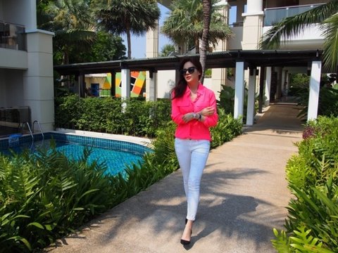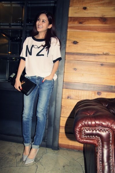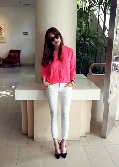 그곳에서 입은 흰색 스키니가 한국에서 화제인걸 알고 있을까...