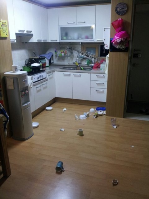 이건 그릇거치대를 밀쳐서 그릇이 잔뜩 깨진것을 바로 찍어놓은겁니다.