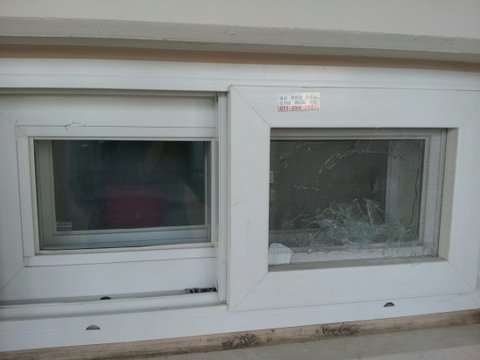 이건 부엌 창문을 칼로 찔러서 깨놓은 상태입니다.