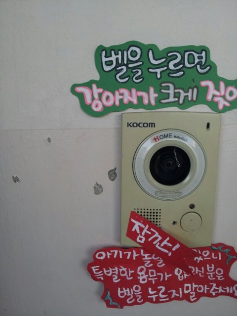 초인종이 울리면 개가 짖어서 어린 조카가 깰수 있어서 초인종에 손글씨로 개가 짖을수 있으니 중요한 용건일때만 눌러달라고 붙여놨었습니다