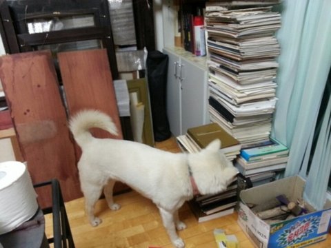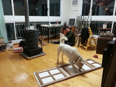 2층에 있는 아빠작업실에 놀러온 가비.