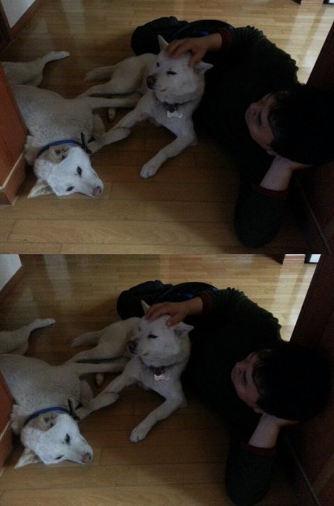 백구랑 이렇게 뒹굴뒹굴 잘하는 가족은 아마 우리밖에 없을것같음