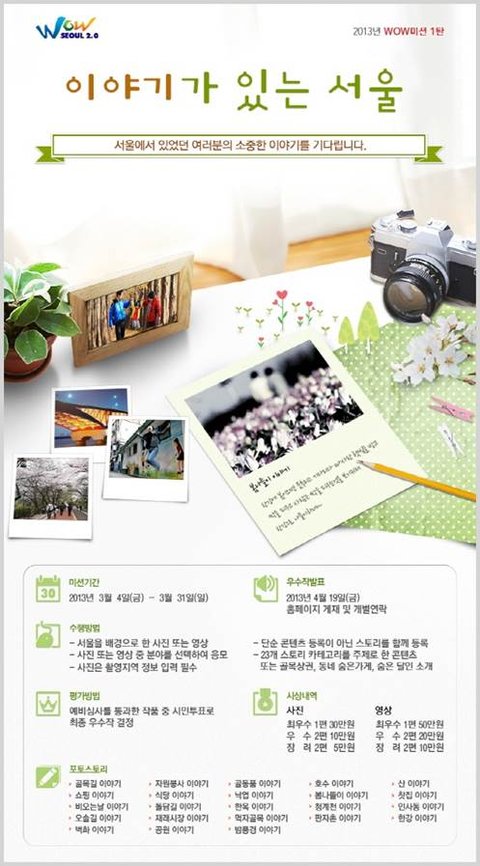 모집 요강 및 홈 페이지 : http://wow.seoul.go.kr/mission