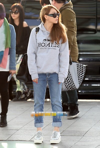 항상 공항에서도 '나는 쎈 척하는 게 아니라 진짜 쎄' 컨셉의 옷만 입고 오던 씨엘
