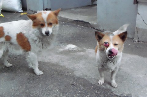 엄마(발바리- 조금큰사이즈), 아들(귀여운 작은사이즈 - 눈이 심하게 다침)이 지금 길거리에서 헤매고 있다 합니다.