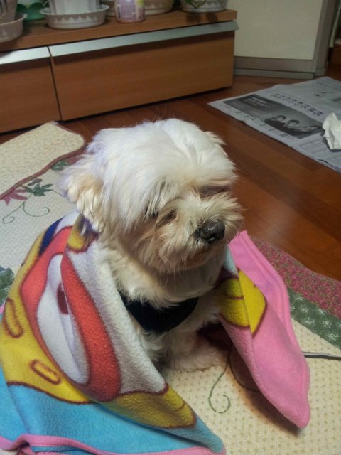 주인이 찾아올거라 생각하고 관리실에 연락처름 남기고 날씨가 쌀쌀하니 일단 집으로 데려왔답니다.