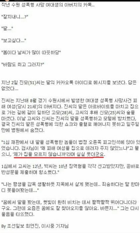 왜 인권단체들은 인권을 존중해주기도 아까운 쓰레기들에게 인권타령인가. 왜 피해자는 나몰라라, 가해자는 항소, 양형선고, 재심등의 특혜를 주는가. 인권도 인간답게 사는사람들에게 존중되어야 할것이 인권이고 인간쓰레기들에게는 마찬가지로 그 수준에 맞는 처벌이 있어야 할것이다. 10년? 12년? 의 세월로 한 생명의 목숨을 앗아가고 그로인해 남겨진 유족에 대한 슬픔의 크기에 비해 어찌 감히 속죄의 시간이라 감히 칭하겠는가. 죽을때까지 뿐만이 아니라, 죽더라도 곱게 죽지 않을만큼 강력한 처벌로 개정해봐라. 어느누가 감히 법정에서 술김이란 말로 회피할것이며, 위 기사내용처럼 감히 웃으며 피해자를 능멸하겠는가. 진심 죽고자 할 각오로 범죄를 저지를놈만 저지르도록 강력한 처벌이 동반되면, 예전 경찰의 슬로건이었던 "정의사회구현" 은 자연스레 이뤄질것이다. 인권단체들이여, 정신차리고 인권을 존중할 대상을 먼저 찾고 존중해라.