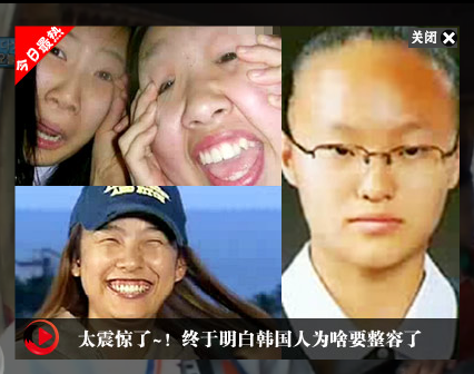 '놀랍다! 한국인이 왜 성형하는지를 알겠다!' 와 나오는 사진 세장. 처음에 보고서는 어이가 없더라구요. 어떻게 저렇게 광고를 놓는건지..저 밑에는 이효리언니 인것같은데.. 저래도 되는건지..