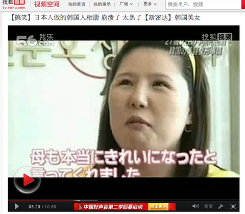 썩 기분이 좋지는 않네요.. 아래는 동영상 링크와 캡쳐본입니다. 링크: http://my.tv.sohu.com/user/detail/65099528.shtml?ch_key=a1e5455c846fee9f