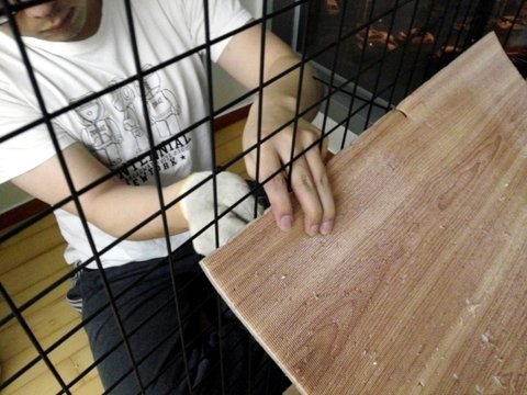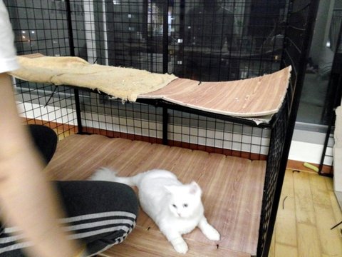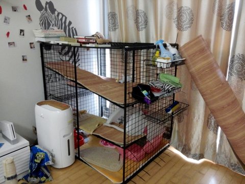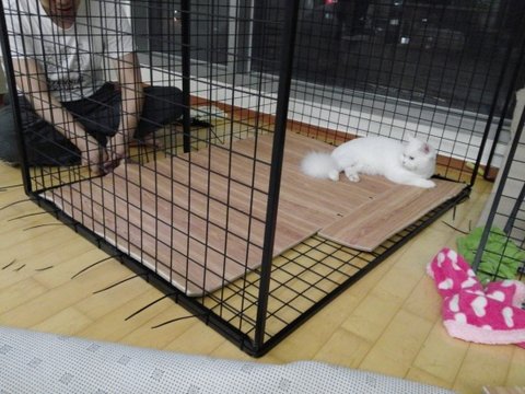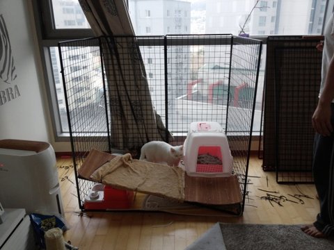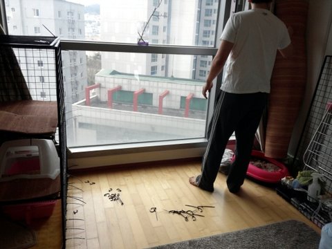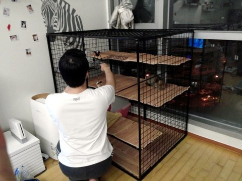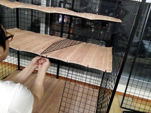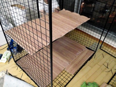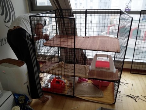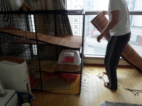 자 이렇게 해서 케이블타이와 철망과 장판으로 만든 고양이 호텔