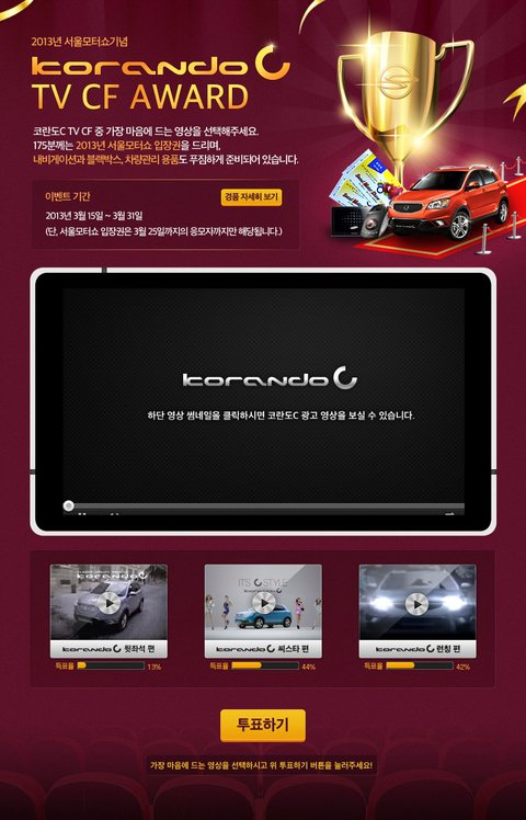 코란도C 세 종류의 TVCF감상한 후 투표하기를 누르면 끗! 캬캬