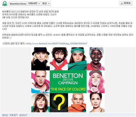 전 세계 모델 9인과 함께 한국과 아시아를 대표하는 베네통의 10번째 모델을 맞추는 거라는데