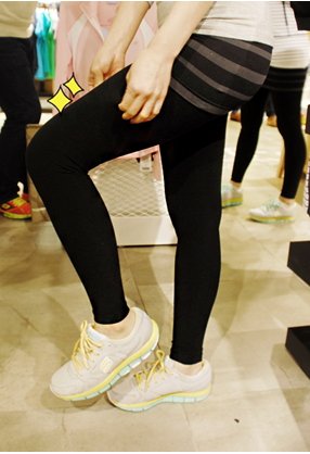 이번엔 다른 레깅스 ~ 줄무늬 포인트의 치마가 덧대어 있어 일상생활에서도 편하게 코디하고 입을 수 있겠죠? 심플하면서도 예쁜 디자인이 맘에 들더라구요