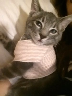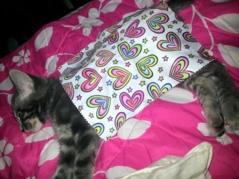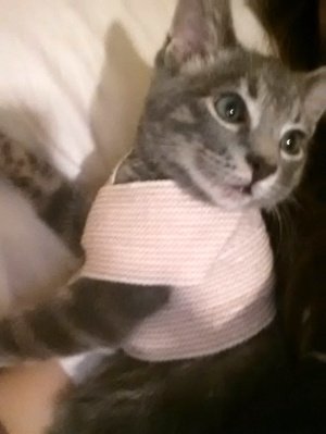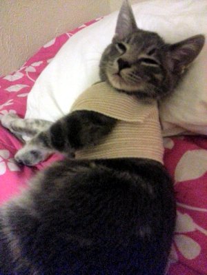 붕대가 너무 불편해하는것같아서 옷으로 갈아입혀줬어요 훨씬더 편해하길래 다행이예요!!