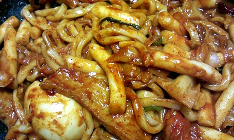 청양고추가루를 팍팍 넣고 만든 매운 떡볶이~ 우동사리에 매운 맛이 쏙 베서 먹다가 쿨피스 사러 편의점에;;;