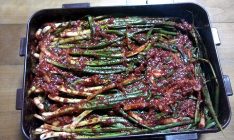 20분만에 후딱 만든 파김치~ 베란다에 놔두고 5일쯤 익혀서 먹었는데 아주 잘 익어서 완전 밥도둑이었어요~