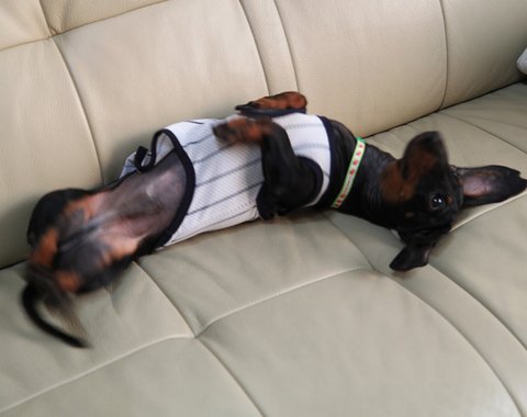 쇼파가 편해서 신난건지, 간지러운건지. 쇼파를 찜한건지