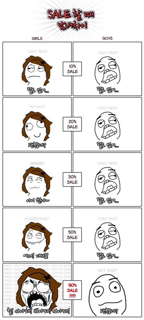 쇼핑할 때 남녀차이래ㅋㅋㅋㅋ 쇼핑몰 광고로 나온거 같지만 나는 조금 공감가는 거 같아 투척해봄ㅎㅎ