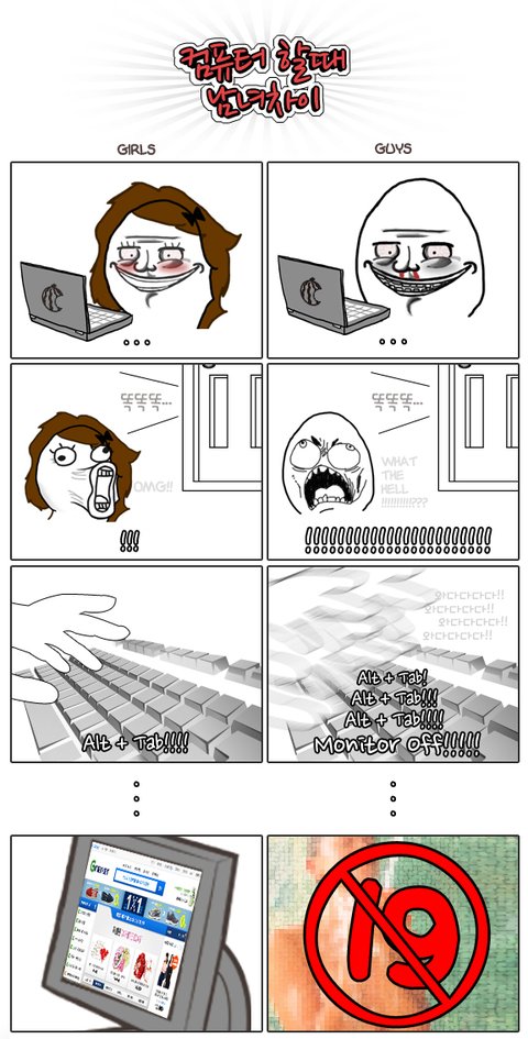 마지막으로 컴터할 때 남녀차인데 첫 번째 완전우낌ㅋㅋㅋ 그치만 그 대상이…ㅎ ㅏ….남자님들…