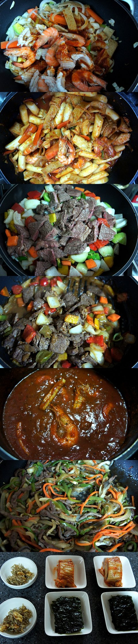 해물떡볶이,챱스테이크,해물토마토 스파게티,월남쌈,고추잡채,크래미전,호박전,잡채,샐러드 등등..