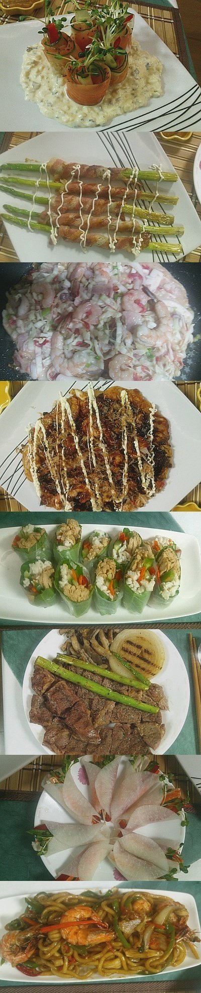 연어 무쌈말이 아스파라거스베이컨말이 오꼬노미야끼 월남쌈 스테이크 무쌈말이 매운 해물야끼우동