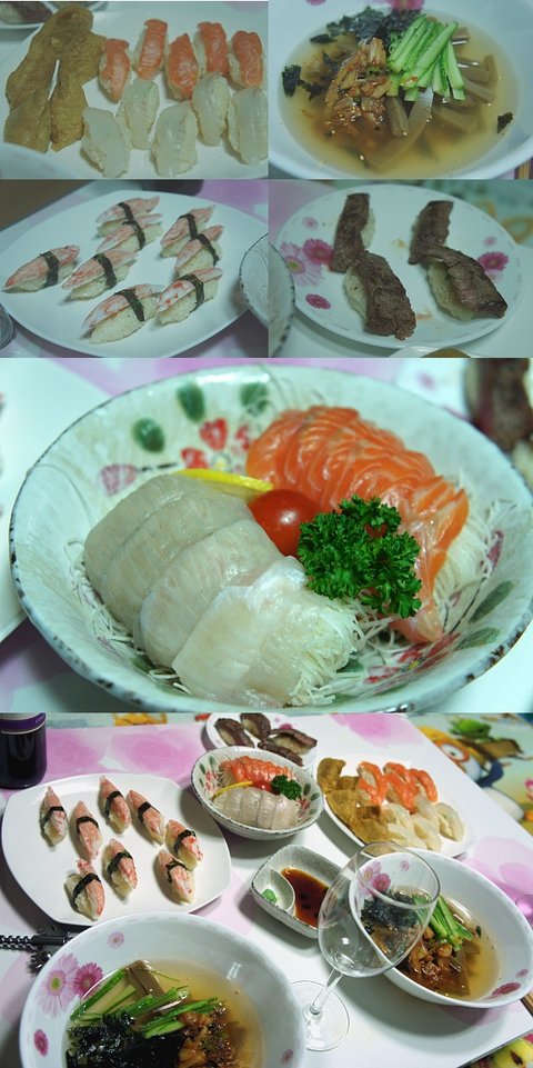 도토리묵밥과 마트에서 떠온 연어 광어 가지고 초밥. 게살초밥 등심초밥도 ㅋ ㅋ ㅋ
