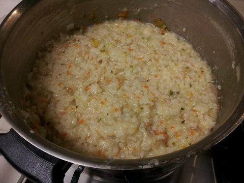 뽀얀 육수에 버섯 양파 호박 당근 넣고 끓인 아가들도 잘먹는 영양죽