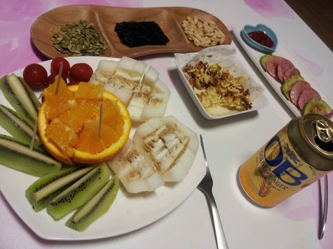 과일에 간단한 안주랑 맥주한잔!
