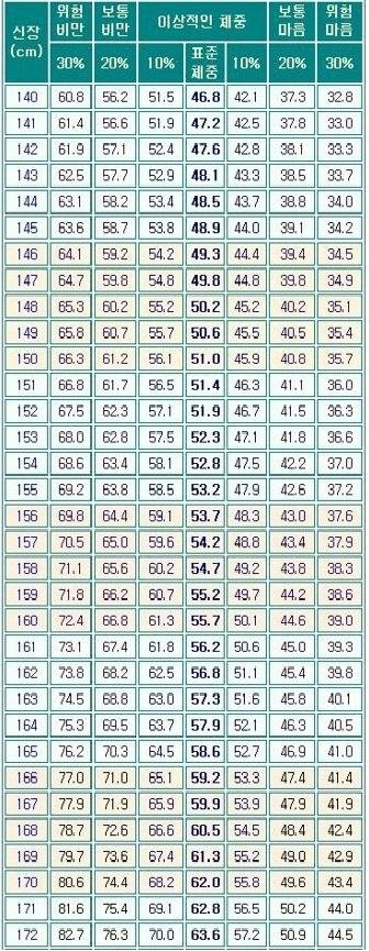 이거 바바요 당신은 어디애 속하십니까 ? 표준 ?이하 ? 이상 ? 그럼 다이어트 하는분들 화이팅!! 너무 무리 하지 않기!