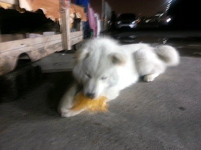 우리를 반기기는 커녕... 찢어진 박스 조각을 물어 뜯고 있었음..