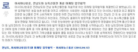 # 아시아나항공 전남도와 농특산물관 개설 마케팅 업무협약 #