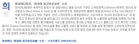 # 아시아나항공 " 아시아 최고 항공사 사상 " 수상 #