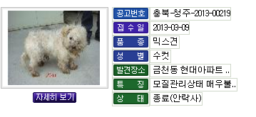 이번에 유기견을 잠깐 돌보면서 동물보호관리시스템을 지속적으로 보게 되었습니다.