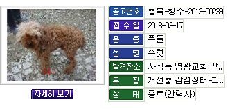 상태에 바로 "안락사(종료)" 로 되어있길래 제가 전화를 걸어봤습니다.