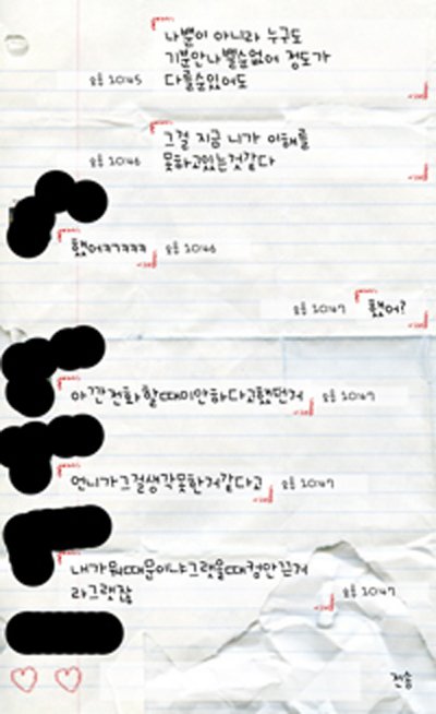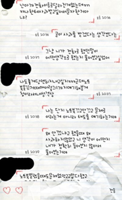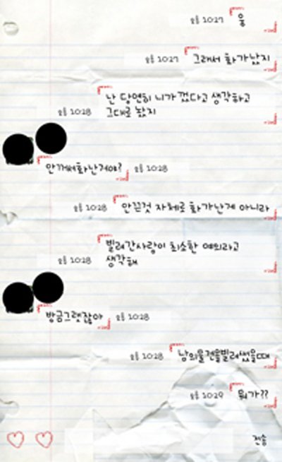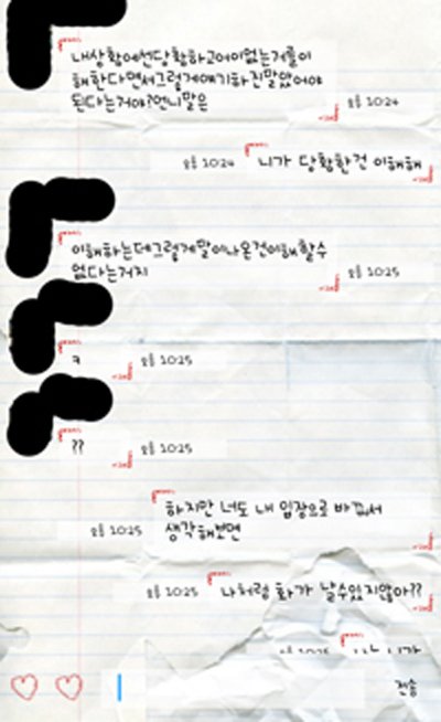 하나도 빠지지 않고 다 올린거예요. 미안하다고 말 했다고 하는데 저는 와닿지도 않았고 그래서 기억도 안나구요.정말 미안하다는 태도를 보였으면 제가 당연히 느끼고 받아들였겠죠. 그리고 보시면 알겠지만 니가 잘했다 내가 잘했다를 가리려고 카톡을 했던게 아니라어차피 4년간 봐야하고 만약에 내가 잘못알고있거나 상대방이 잘못알고 있었다면 그런 점들을바로 알고 서로가 조금씩 이해하고 좋은 쪽으로 끝내려고 정말 노력했었습니다.정말 정말 말 안통하는데도 일일히 설명해 주면서까지 이성적이기위해 노력했습니다. 그런데 그 친구는 여전히 '내가 뭘 잘못했는데? 그래서 사과받고 싶단거아냐?' 이런식이라서더 화가 났었습니다.정말 이런 태도에 화가 나서 여기까지 글을 쓰게 되었네요. _그리고 수업을 같이 들었는데 친구는 저보고 인사하는데 그년..은 고개 떨구고 못본척하더군요.아.. 뭐 원래 이런애였으니까 상관은 없어요ㅎㅎ 제가 객관적으로 쓰지 않았을 수도 있어서 카톡캡쳐한거 공개하는거구요앞으로 4년간 어떻게 해야 할지 생각나는 거 있으시면 조언 좀 주셨으면 감사하겠습니다.