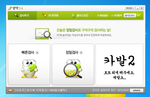 올만에 알약으로 검사 좀 돌리려고 알약 켰는데ㅋㅋㅋㅋㅋ (아.. 뭐 이상한거 본거는 아니고ㅋㅋㅋ)