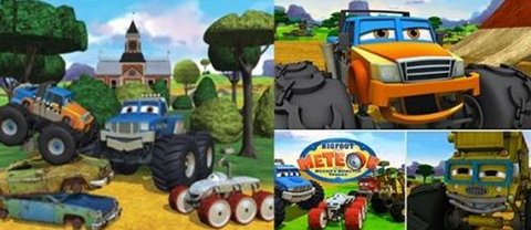 다양한 자동차 친구들이 함께 등장하는 애니메이션 몬스터 트럭 메테오!
