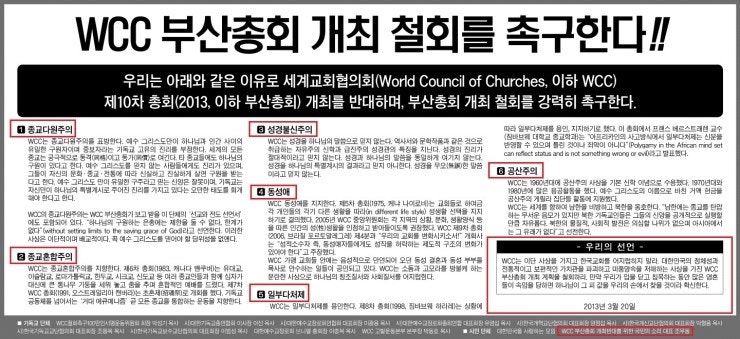 WCC 부산총회 개최철회를 촉구한다.