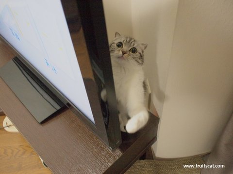 다시 일어나서... 고양이 영역인 거실로 나갔는데 앙즈가 티브뒤에서 꼼지락꼼지락하길래...