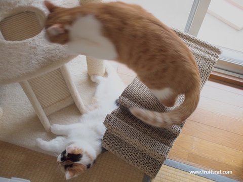 난리가 났습니다!! 퐁즈 영역인 오토바이 스크래치에 유봉이가 있으니... 퐁즈가 미칠려고 합니다~
