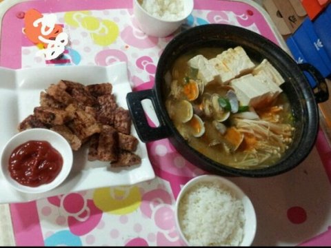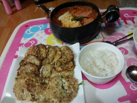 된장찌개와 함박스테이크!(애는산거라서..하)