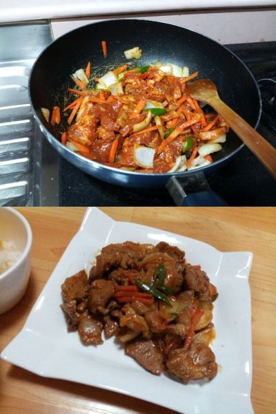 목살사서 당근이랑 양파랑 청양고추랑 고추장,참기름넣고 슥슥 볶아줬음ㅋㅋ
