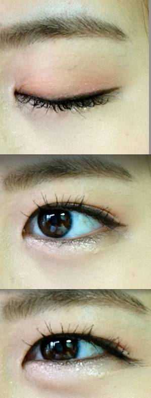 정말 연~한 복숭아 아이새도우랑 갈색 아이라이너로한 눈화장이에요~