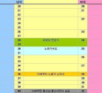 남, 여 나이 별 전성기 표.