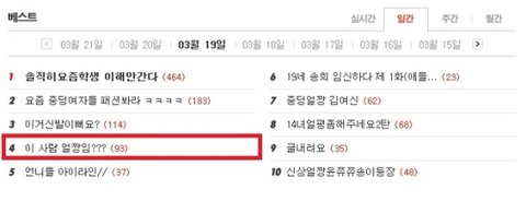 3월 19일 베스트 4위 '얼짱논란' 게시글