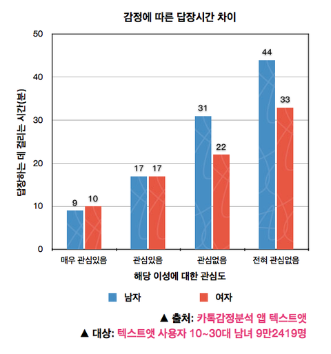 그 동안 답장시간과 감정간의 상관관계에 대해 추측은 많았으나,
