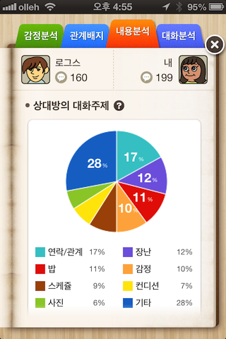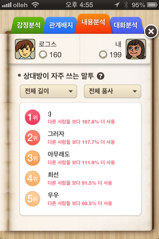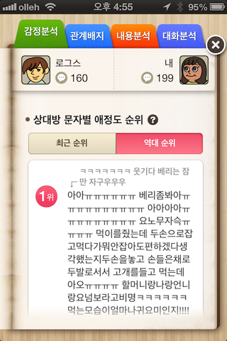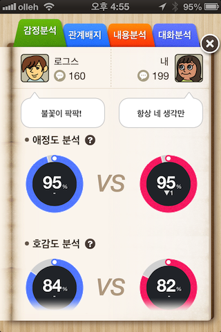 텍스트앳으로 카톡대화 넣고 분석해보시면 아실거에요..