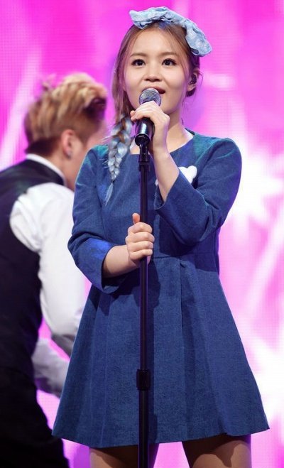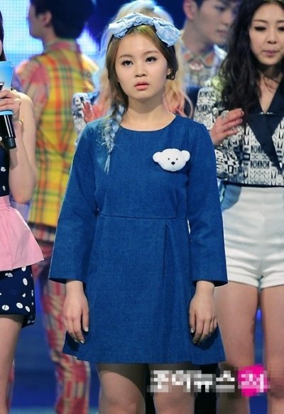 최근 무대에 꼬까옷 돋는 데님 미니 원피스를 입고 나온 이하이~